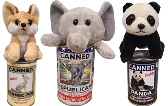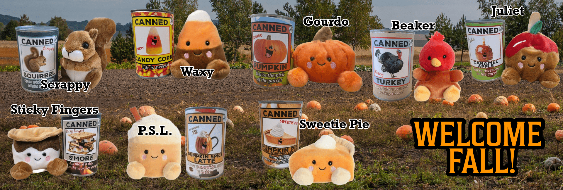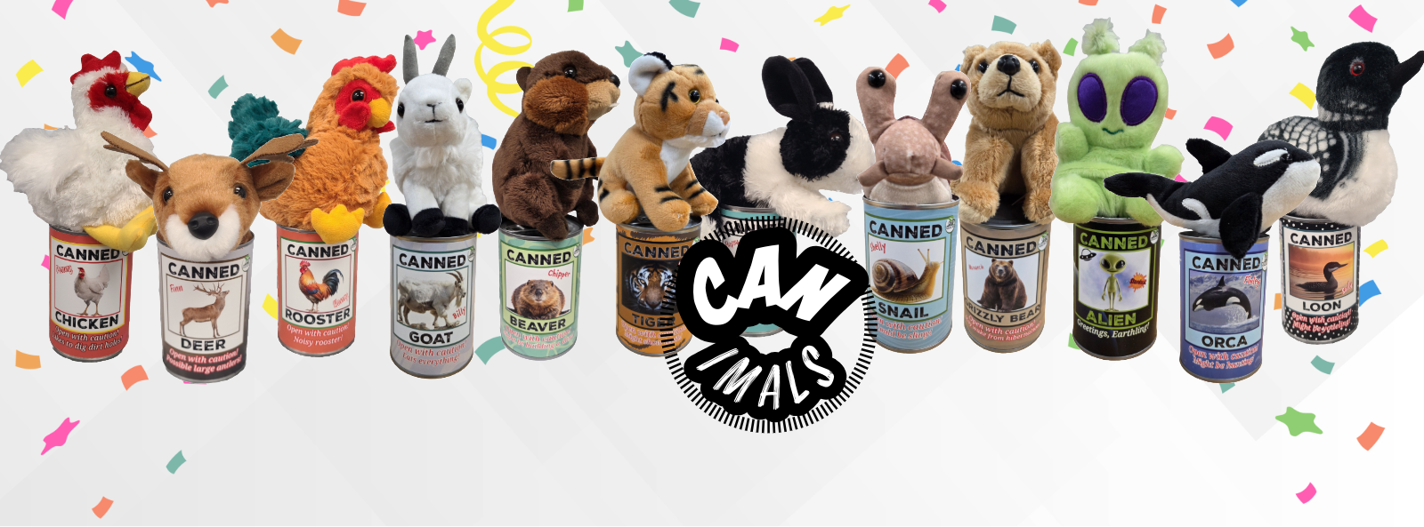 We love bringing joy and smiles to your customer's faces when they open their can from us. Our 6 kids (ages 1 through 15) help us come up with our ideas for which stuffies are the coolest to sell! Labels and cans are designed and made in the USA.