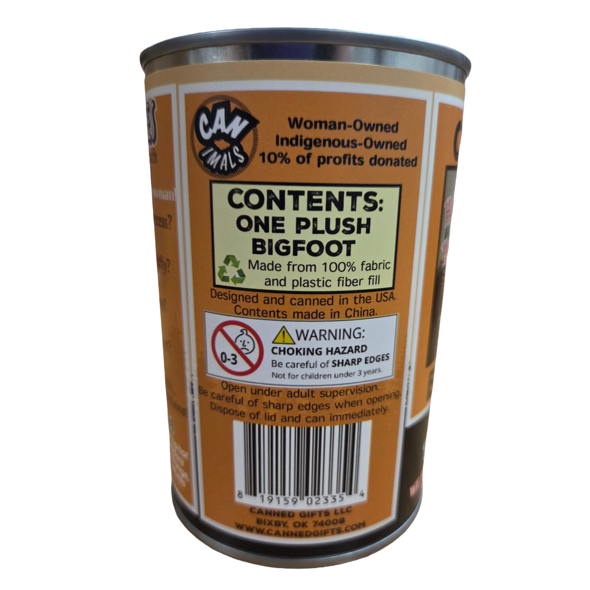 • Plush bigfoot sealed in a can. Your choice of lid style: regular, pop top, or foil.