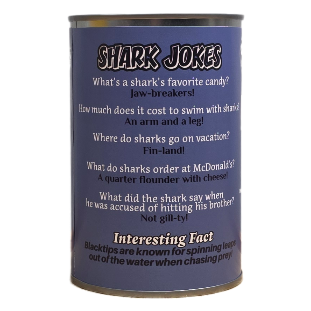 Whether you’re gifting it to a young explorer, a collector of unique treasures, or simply want a conversation starter, Canned Blacktip Shark promises fun!