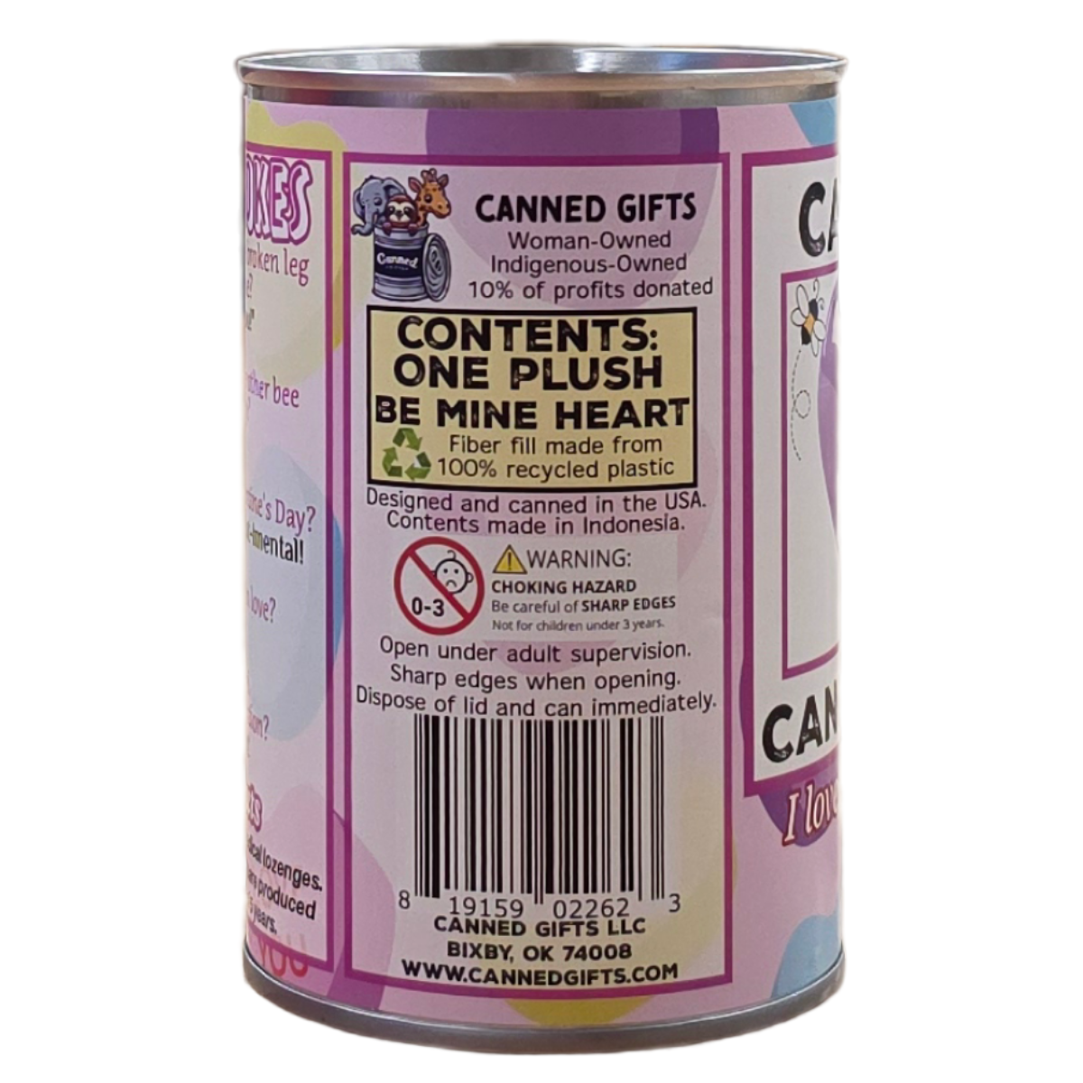 • Designed and canned in the USA. Can and label made in USA. Plush made in Indonesia.