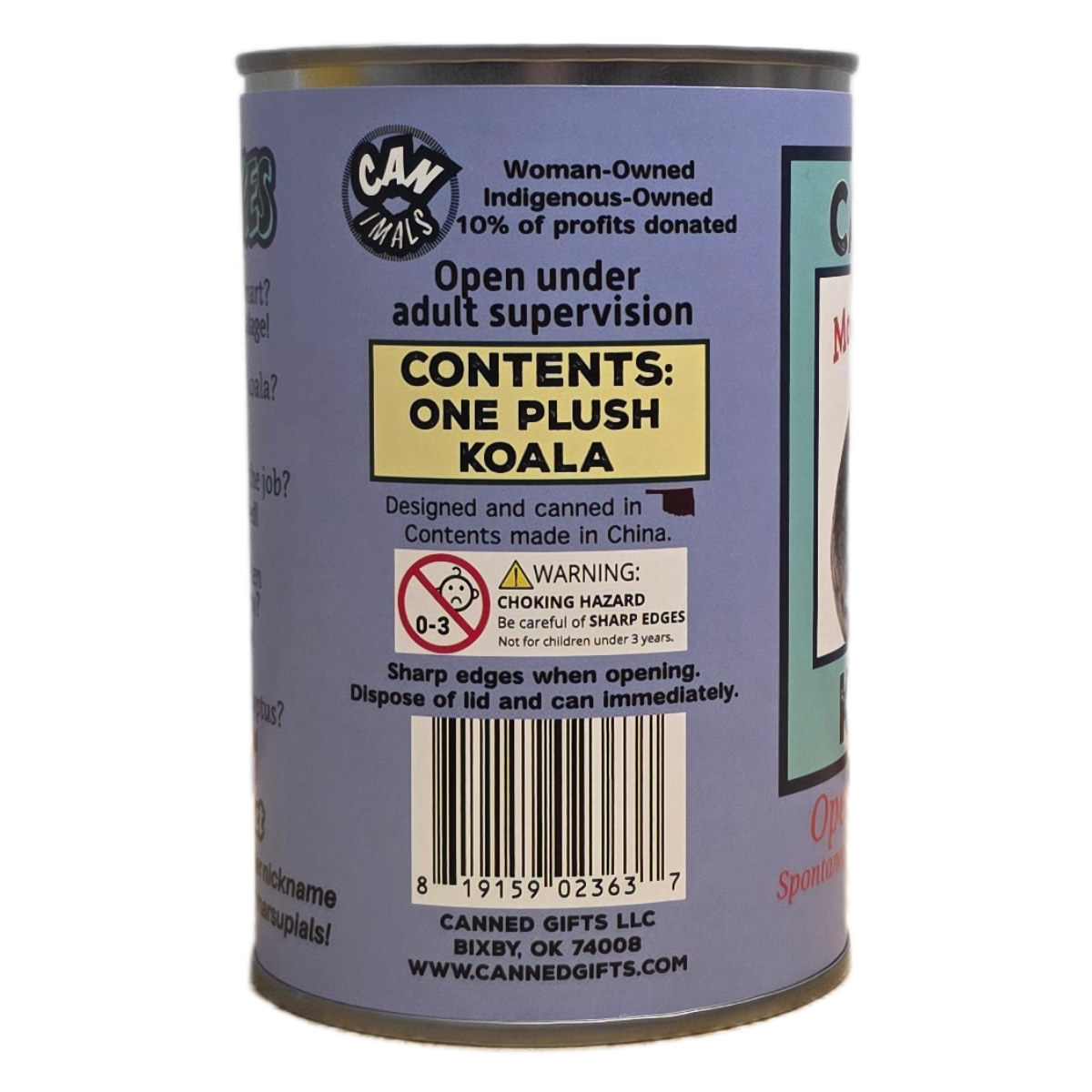 • Kaola plush sealed in a can. Use a can opener to open the fun gift or choose the pop top lid!