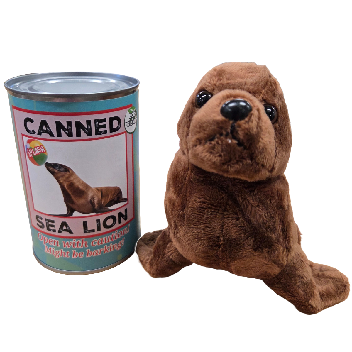 • Sea lion plush sealed in a can. Your choice of lid style: regular, pop top, or foil.